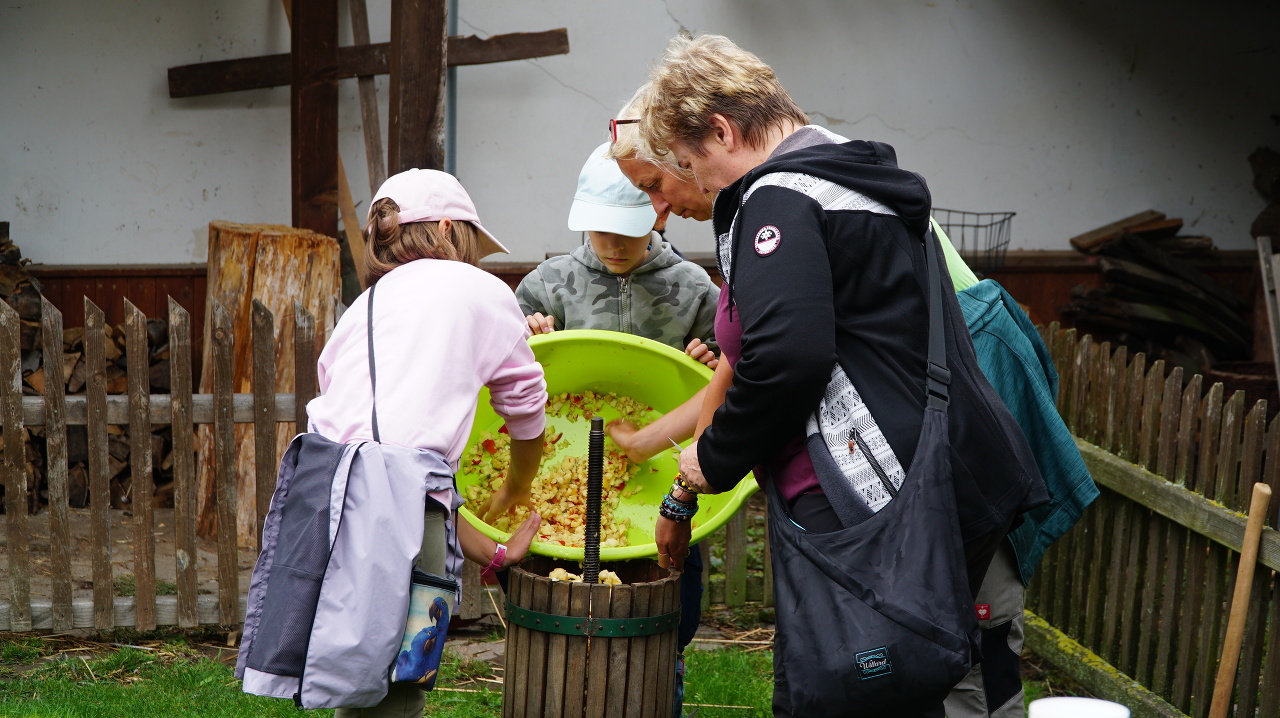 Sklizeň na statku Přijďte s námi oslavit sklizeň. moštování jablek pečení placek ochutnávka netradičních marmelád výroba křížal domácí výroba musli domácí koláče nakládání zeleniny první podzimní ohýnek.